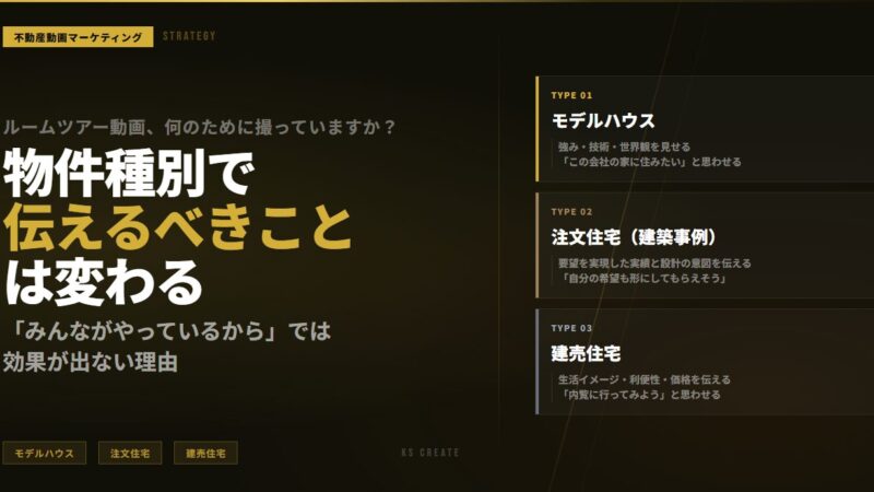 物件の魅力を動画で伝えたいけど、何から手をつければいいかわからない不動産・工務店さんにおすすめです。